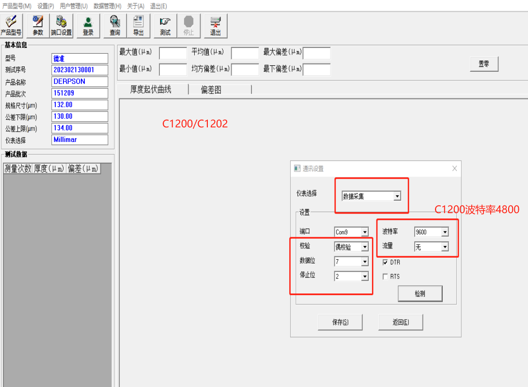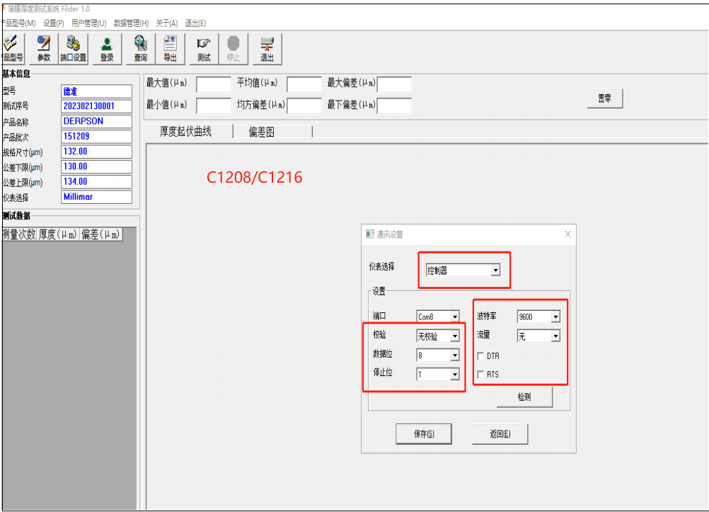 5、設(shè)置測厚儀軟件里的控制器/數(shù)據(jù)采集參數(shù),如下: