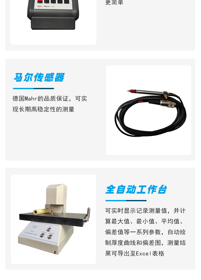 ?薄膜行業(yè)厚度測(cè)量標(biāo)準(zhǔn)配置,適用于高精度測(cè)量,內(nèi)置測(cè)帽調(diào)平機(jī)構(gòu)、避免反復(fù)設(shè)置系數(shù)